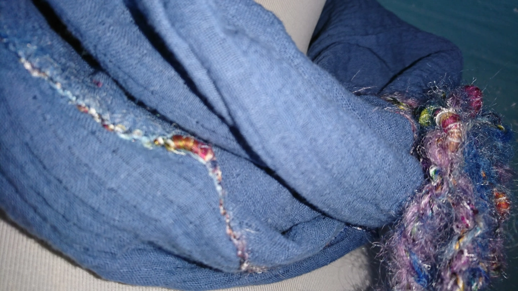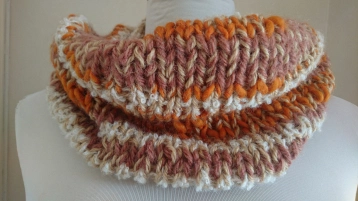 Réalisation de tours de cou à partir de foulards ou tissus existants, en tricot et en gaze double.